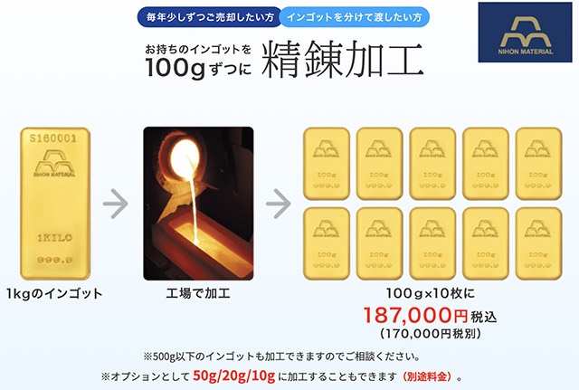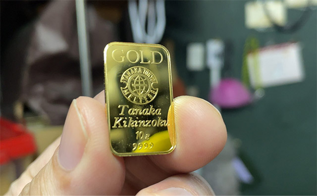 地金1個の重さは約10グラム。