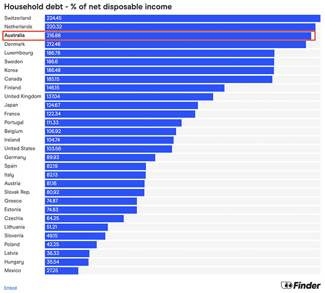 家計債務が可処分所得の200%超という、