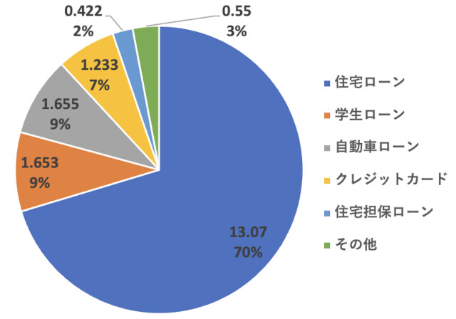 $B=;Bp%m!<%s(B (Mortgage Debt)$B!'(B$13.07 trillion$B!J(B70.3%$B!K(B